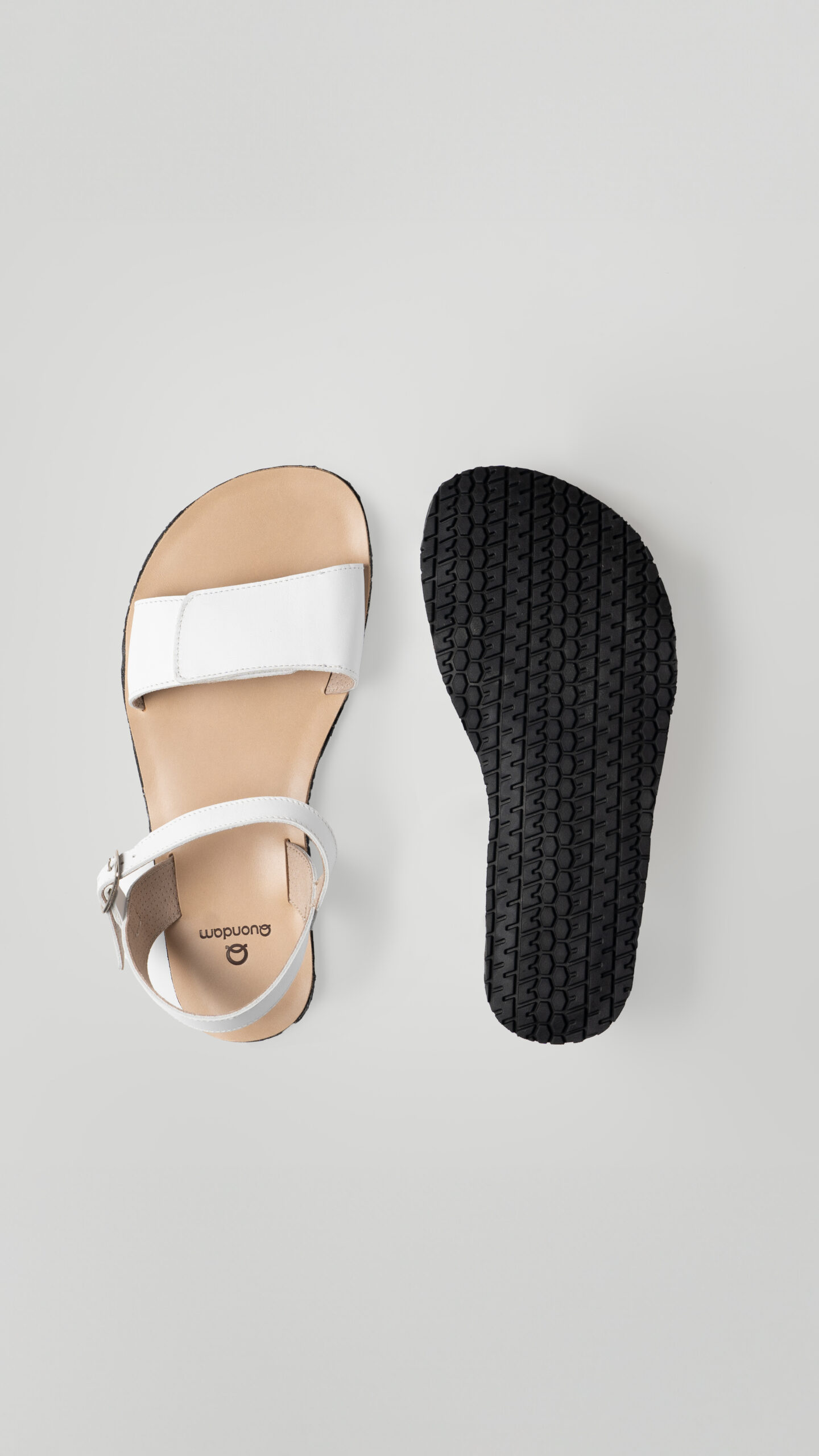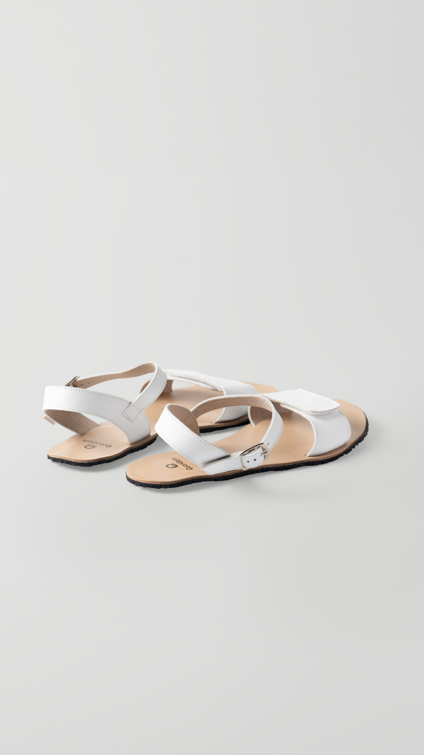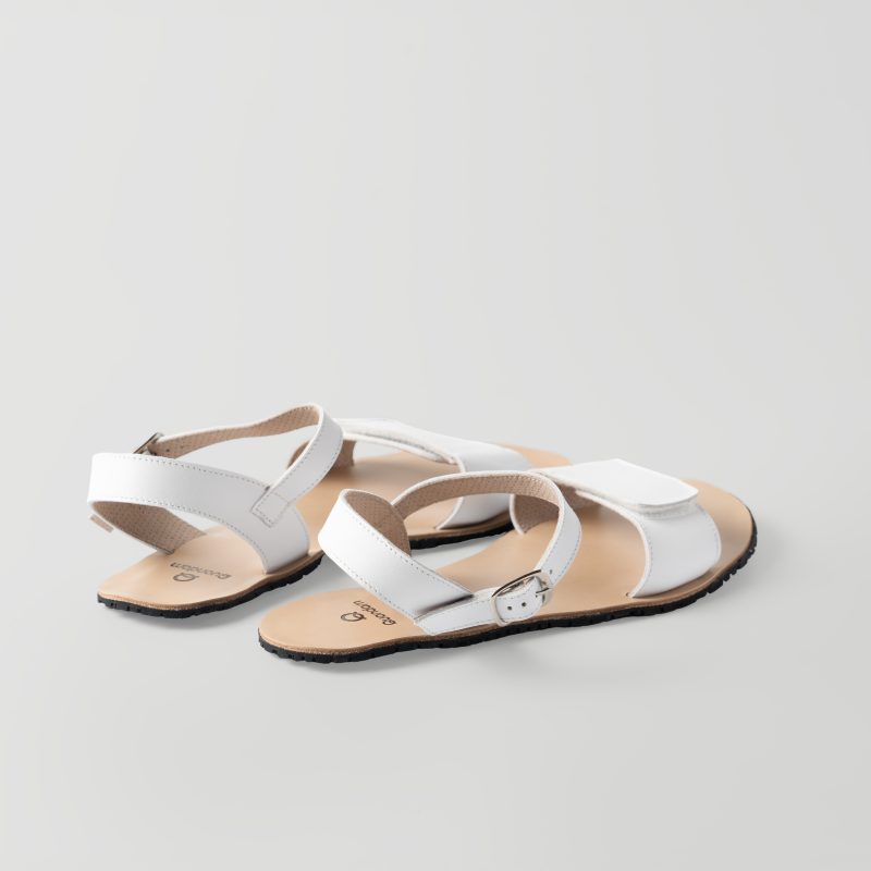 Con velcro en la pala y con hebilla en la tira que sujeta el tobillo para permitir que ajuste fácilmente a diferentes anchuras de pies. Presentada en los tres colores que siempre encajan: blanco, negro y marrón.